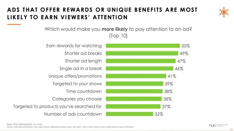 - Viewers say earning rewards for watching ads would make them more likely to pay attention to them.